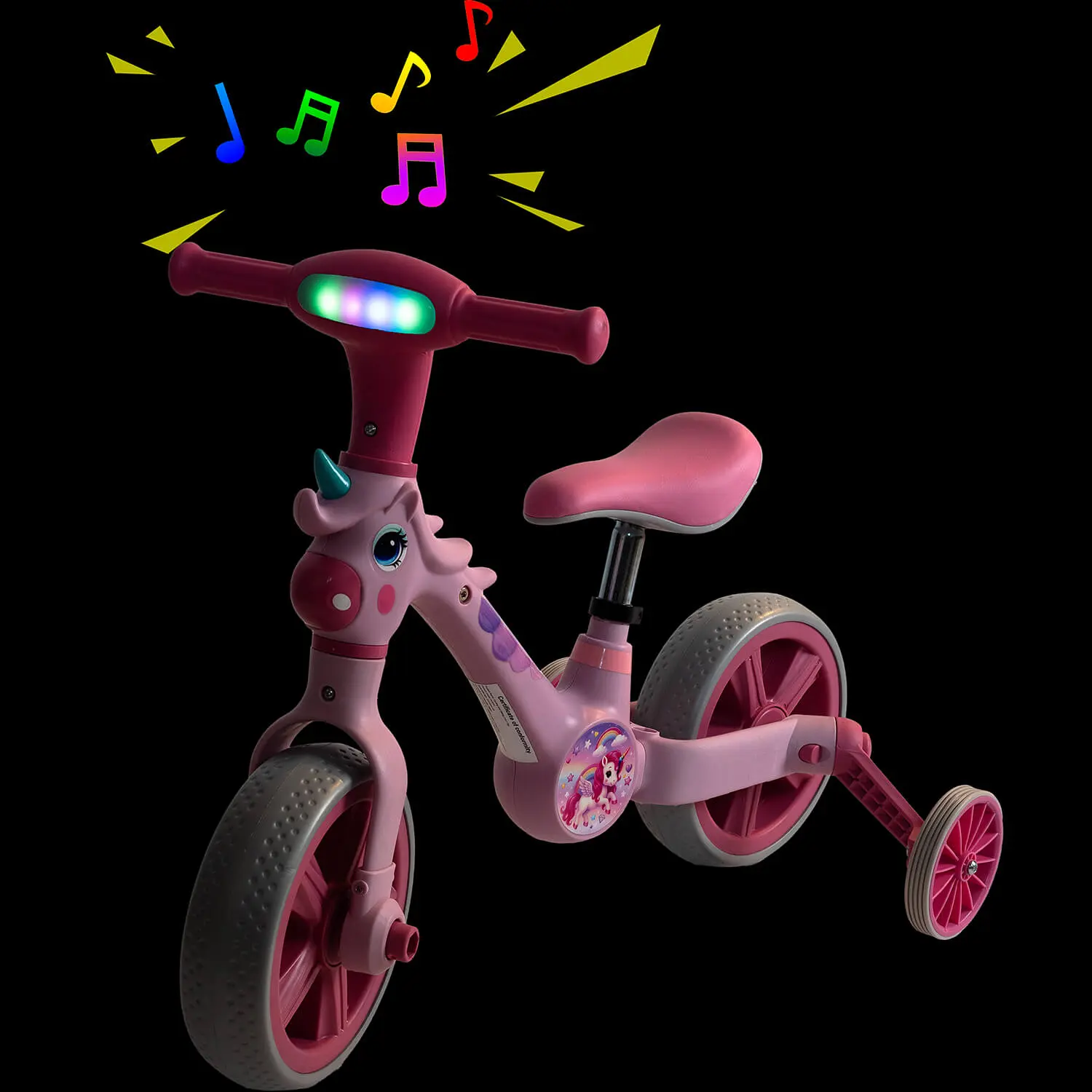 Design 2 in 1: balance bike + bicicleta cu pedale si roti ajutatoare
