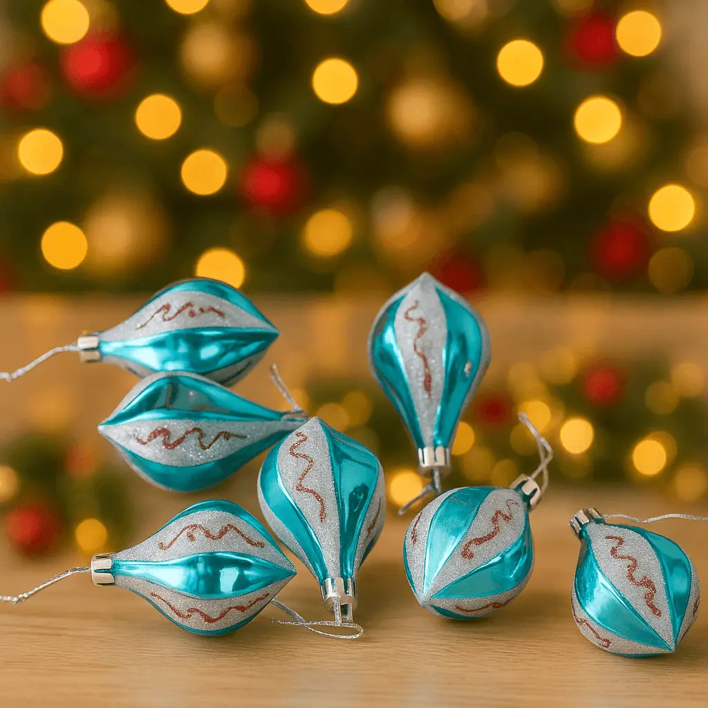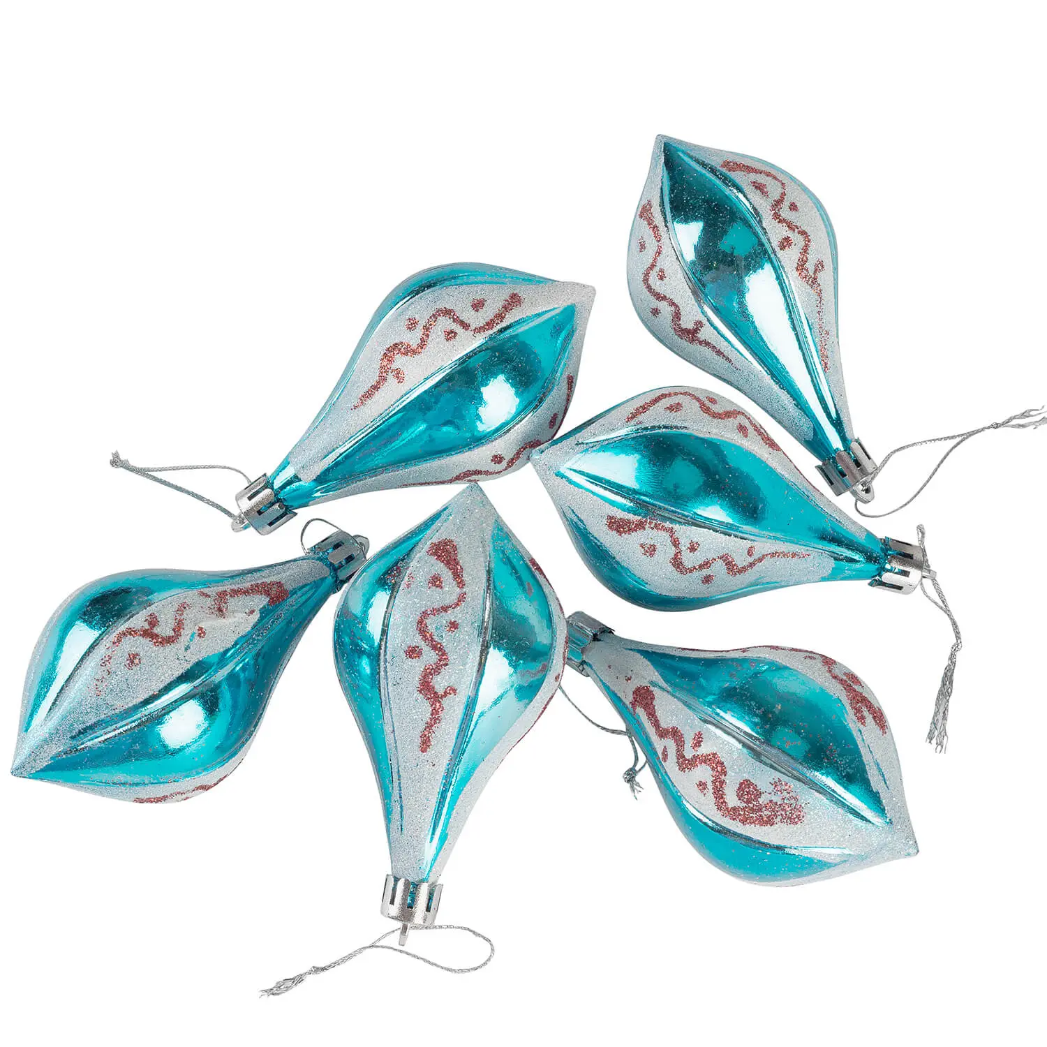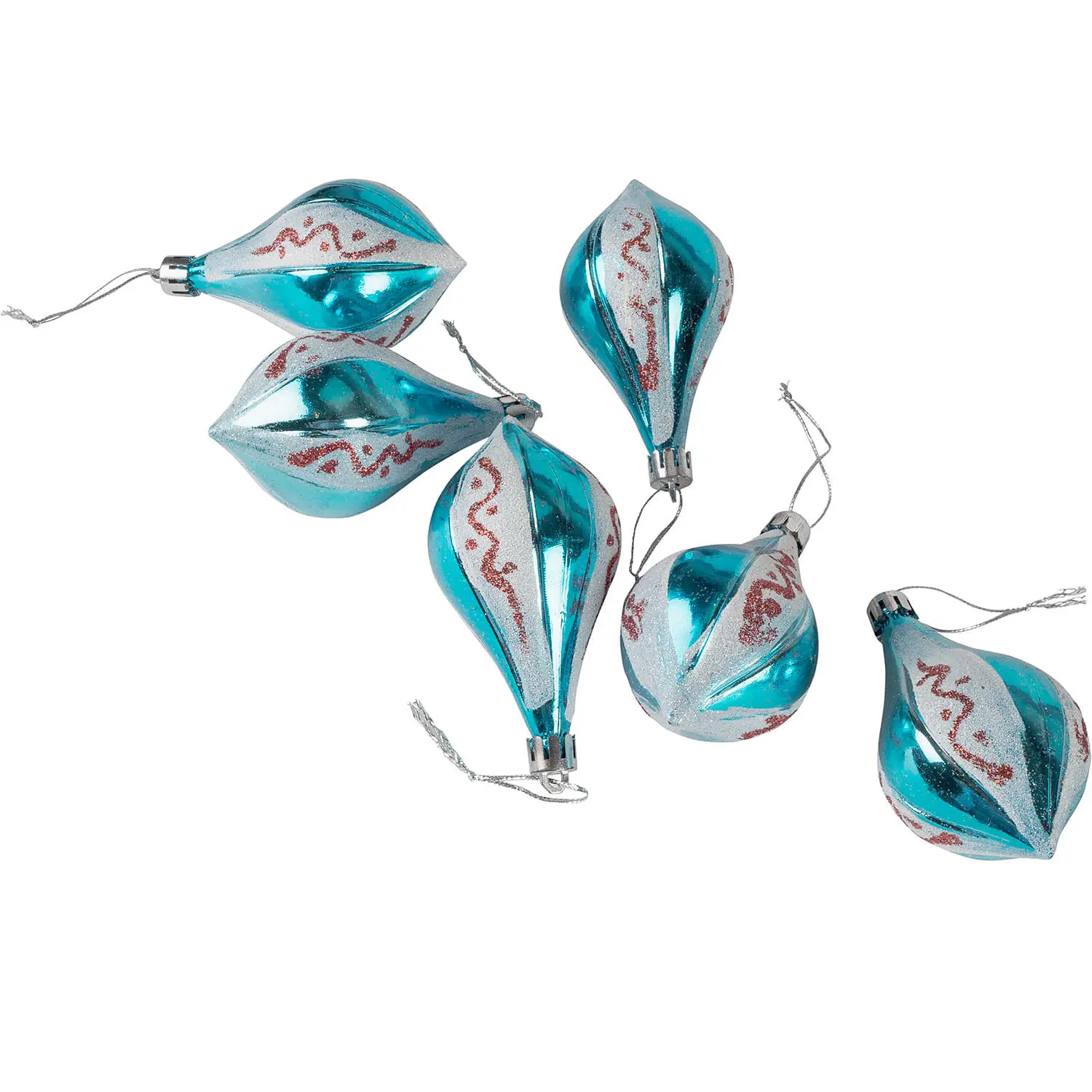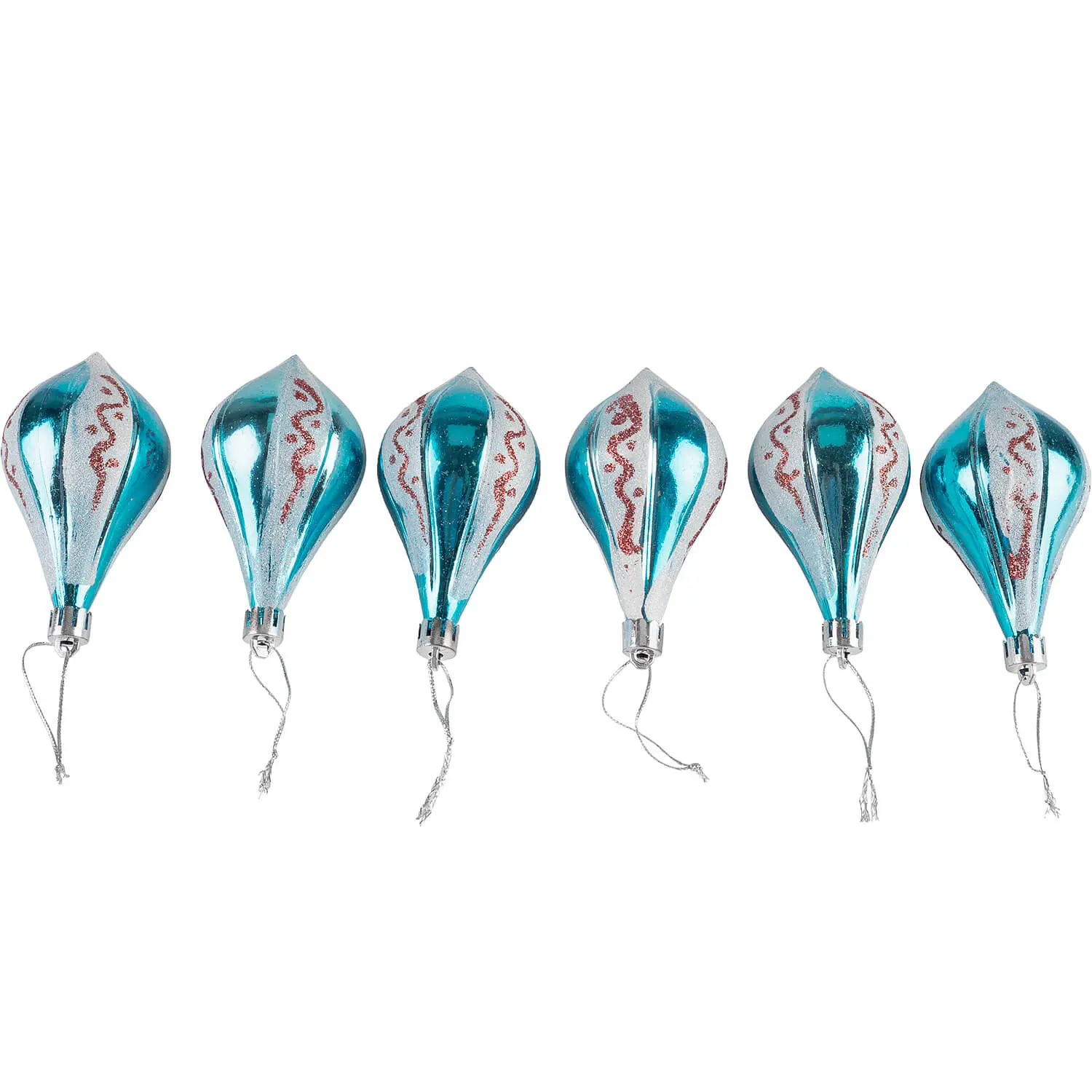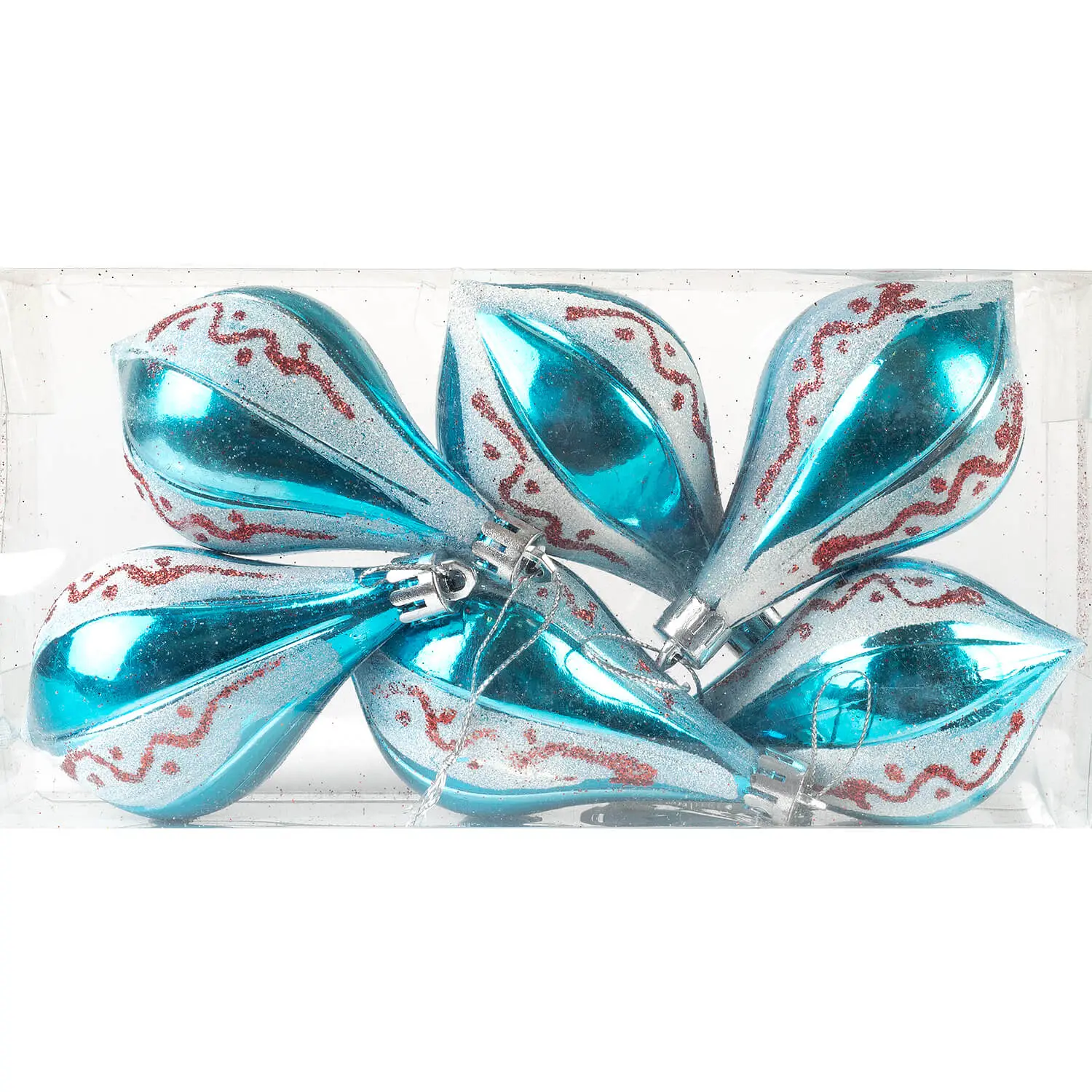 Set 6 conuri lucioase Holly, diametru 9 cm, Turcoaz /Argintiu