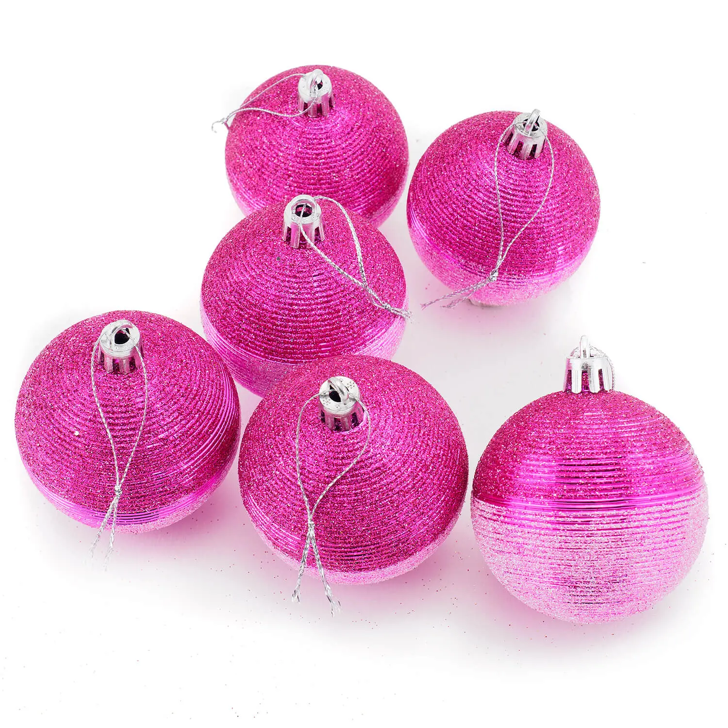 Set 6 globuri striate, diametru 6cm, magenta, Holly
