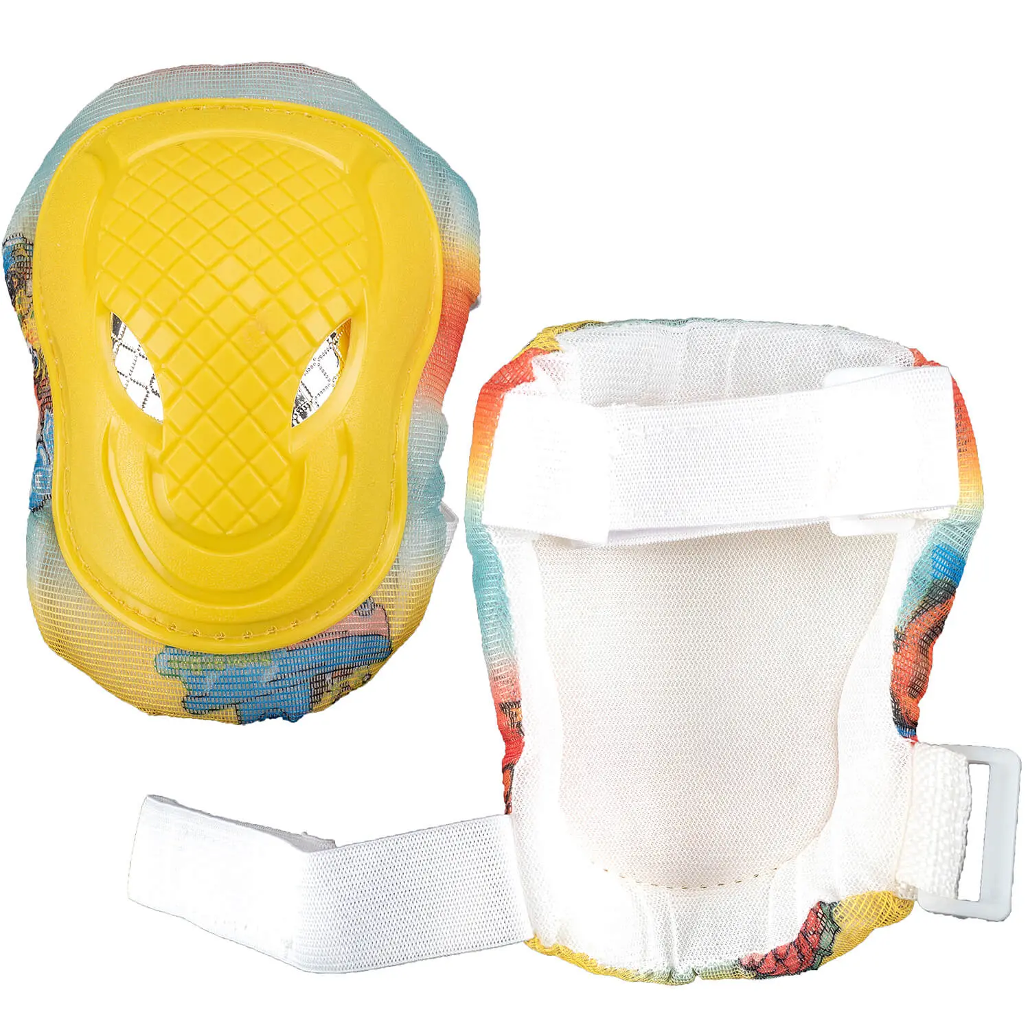 Setul include genunchiere, cotiere si palmare, oferind protectie suplimentara pentru articulatii si palme. Sistemul de inchidere cu benzi Velcro permite ajustarea usoara si fixarea sigura pe picior, brat si mana, fara a limita libertatea de miscare a copilului.
