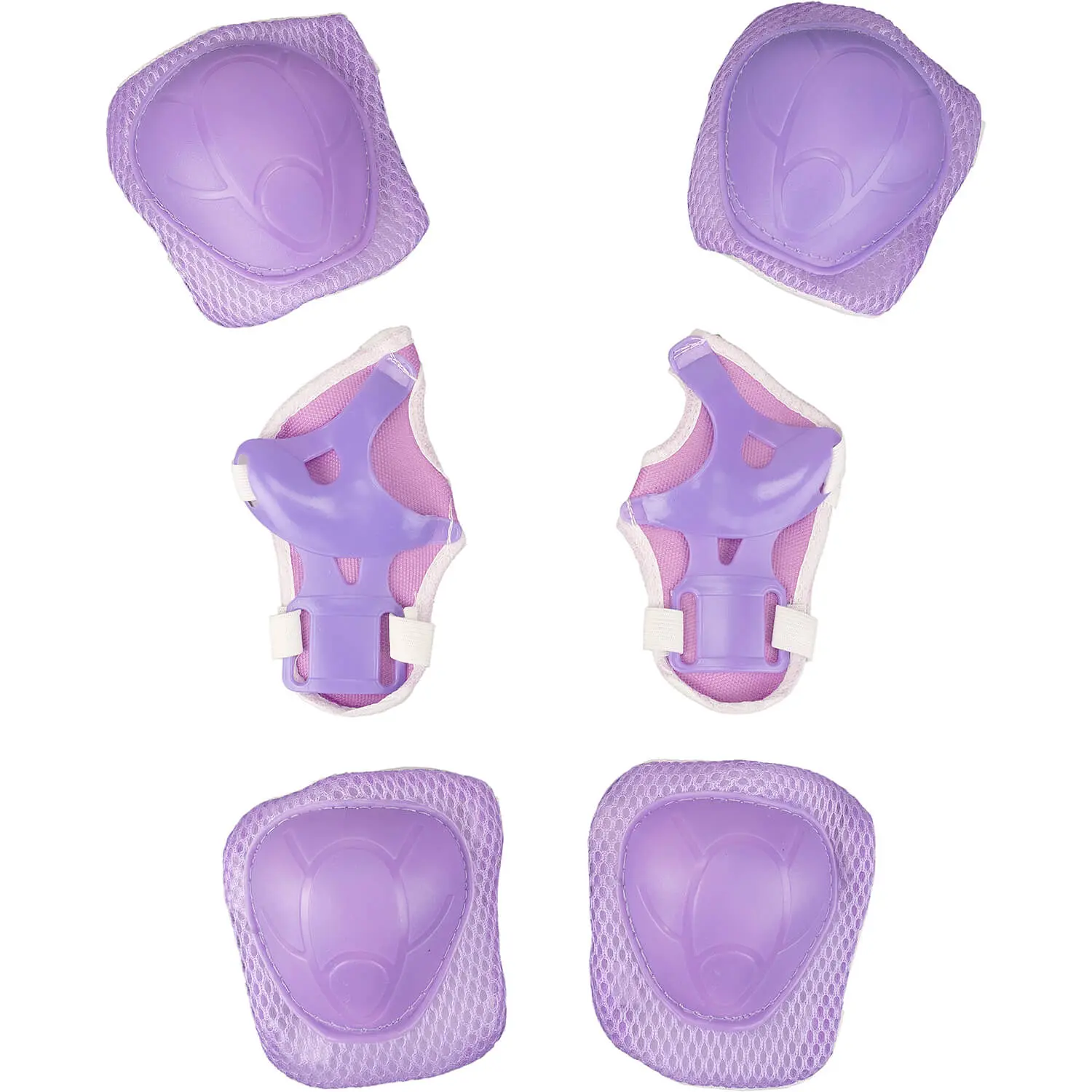 Setul de protectii incheieturi este din material plastic rezistent si mesh.