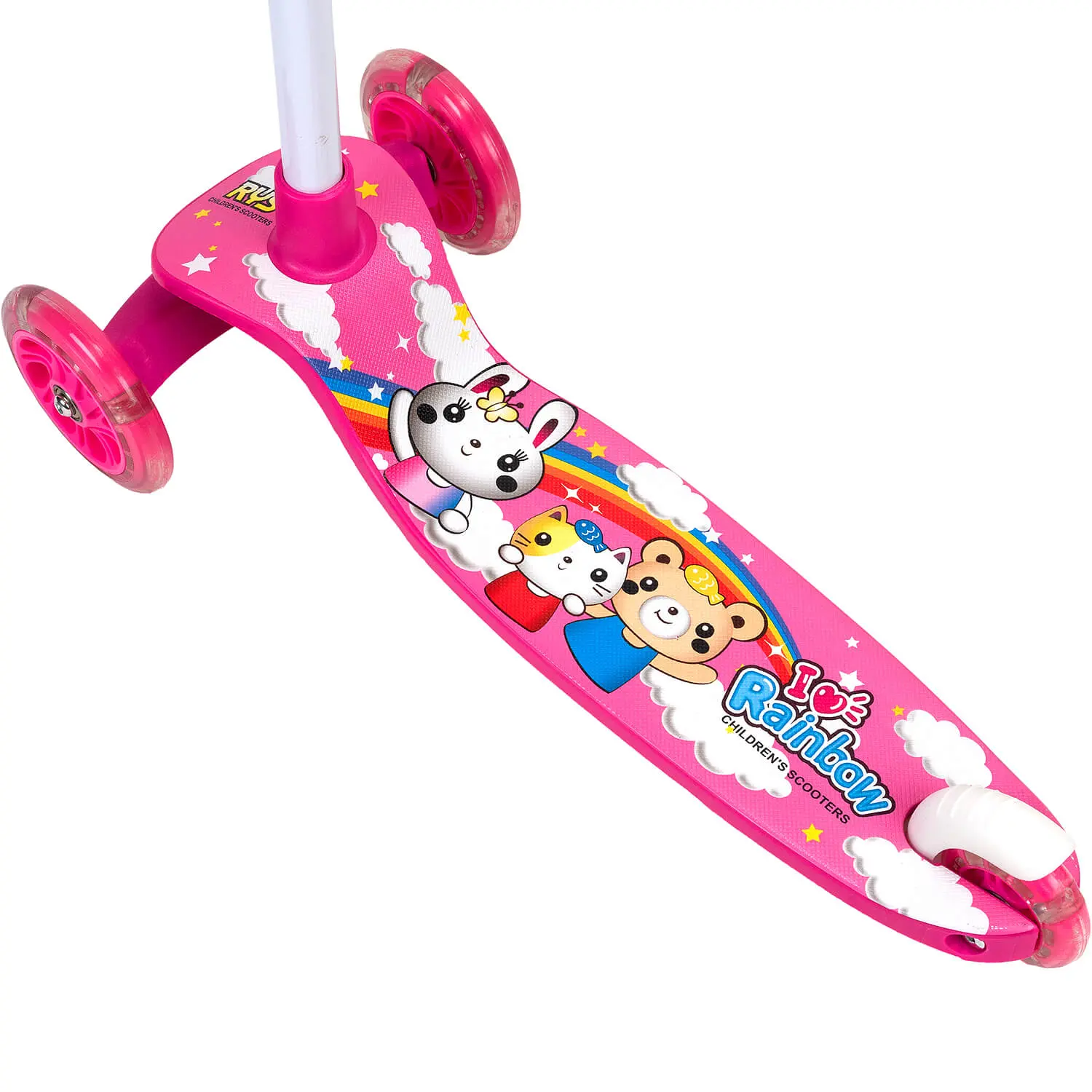 Rotile si platforma stabila mentin trotineta sigura si usor de controlat, sprijinind dezvoltarea coordonarii si a echilibrului in timpul utilizarii. Designul atractiv si rotile luminoase transforma fiecare plimbare intr-o activitate placuta, ideala pentru joaca in aer liber.